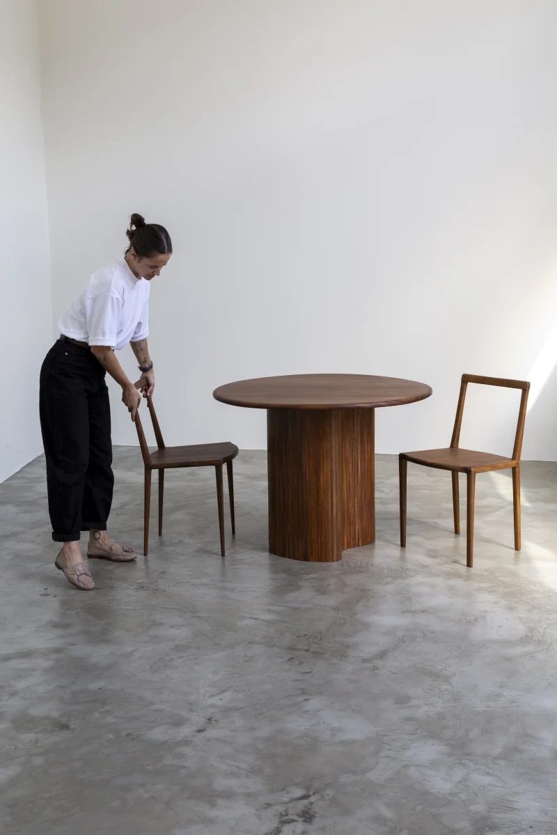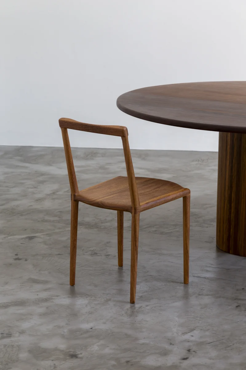 The “Gi Chair,” unveiled at the MÃOS SOMA collective during São Paulo’s 2022 Design Week, embodies minimalist elegance. This chair’s design focuses on the seat, crafted solely through traditional joinery. Its slender, rounded frame pushes the boundaries of minimalism, resulting in a light and refined aesthetic.