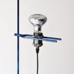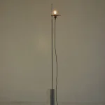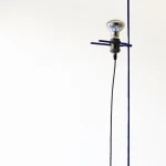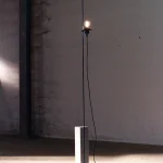 The project is made up of a few simple elements, a regular base, a rod, a light bulb, and an electric cable, which establish a dialectical relationship often based on contrast. For example between the sinuous fluidity of the wire and the perfect straightness of the rod or the marble edges, or between the heaviness of the base and the lightness of the metal part. The whole project is based on balance.
