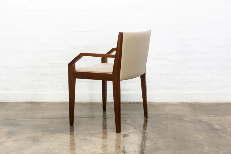 The Giovanni Chair is a decidedly modern take on traditional woodworking techniques. Its gently curved solid wood frame is partially wrapped in the leather of your choice, creating a subtle dialogue between two contrasting yet richly textured materials.
