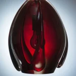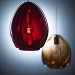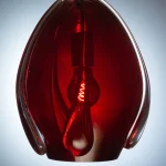 Dark Ruby pendant lamp from Georgiev Zabeta’s “Glass Drops” series. This contemporary mouth-blown lamp features striking deep red glass that creates a rich and warm environment in your space. The use of ruby glass adds a distinct and intriguing appeal, creating a dynamic but cozy atmosphere.