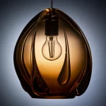 From Georgiev Zabeta’s “Glass Drops” series, this contemporary mouth-blown pendant lamp features fire opal glass, casting a warm amber glow. The exquisite use of fire opal glass adds a unique, captivating charm, creating a cozy atmosphere with its soft, amber light.