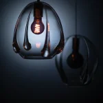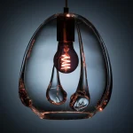 This futuristic pendant lamp, by Bulgarian based designer, Georgiev Zabeta, made of transparent, mouth-blown glass, creates a space-like atmosphere. Its rounded and softly curved shape produces an intriguing interplay of light that varies with the selected bulb.