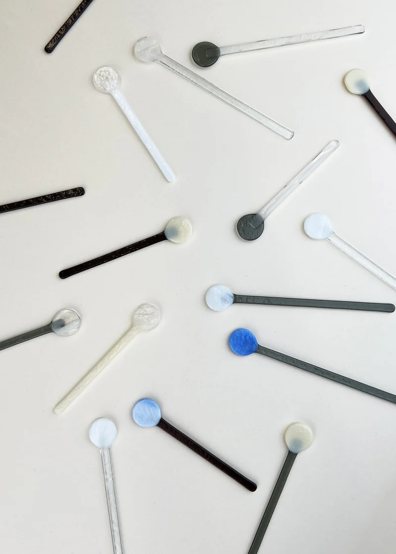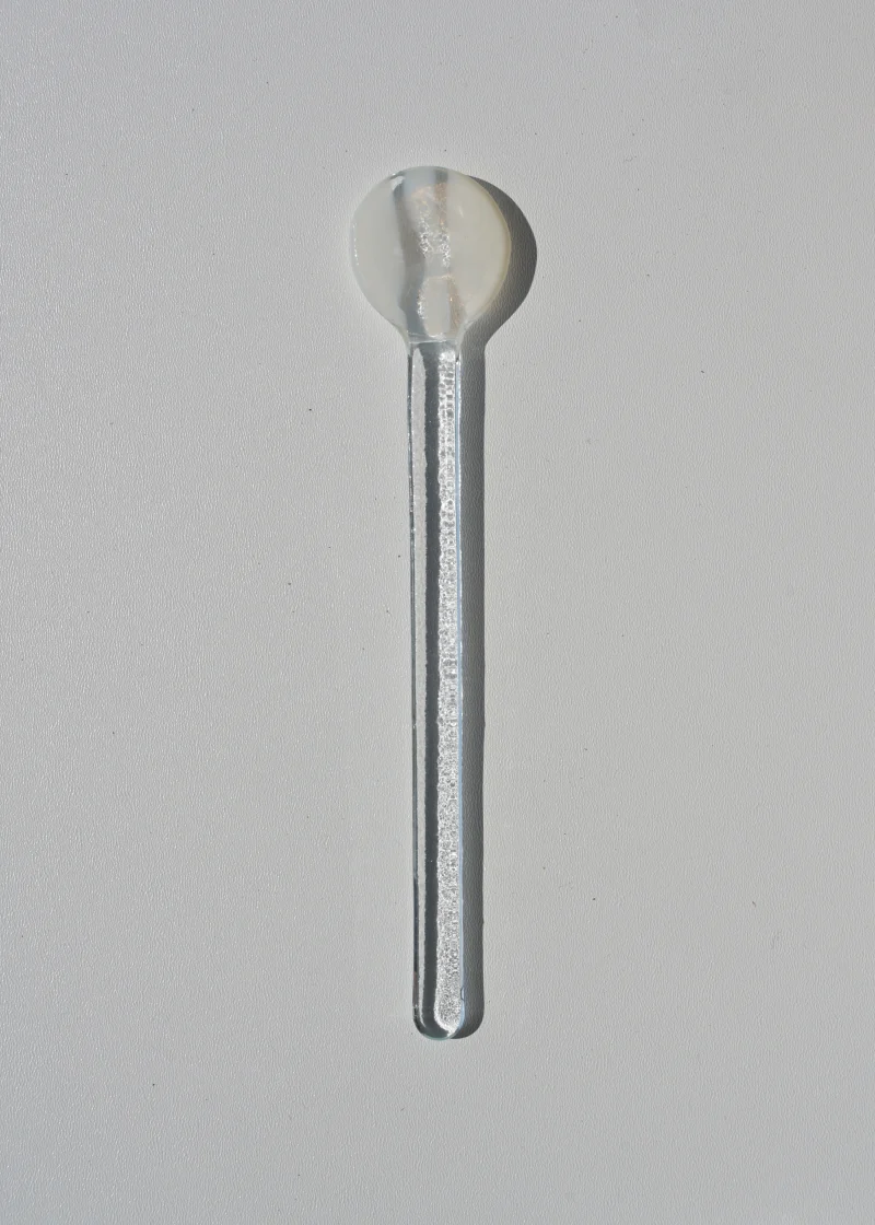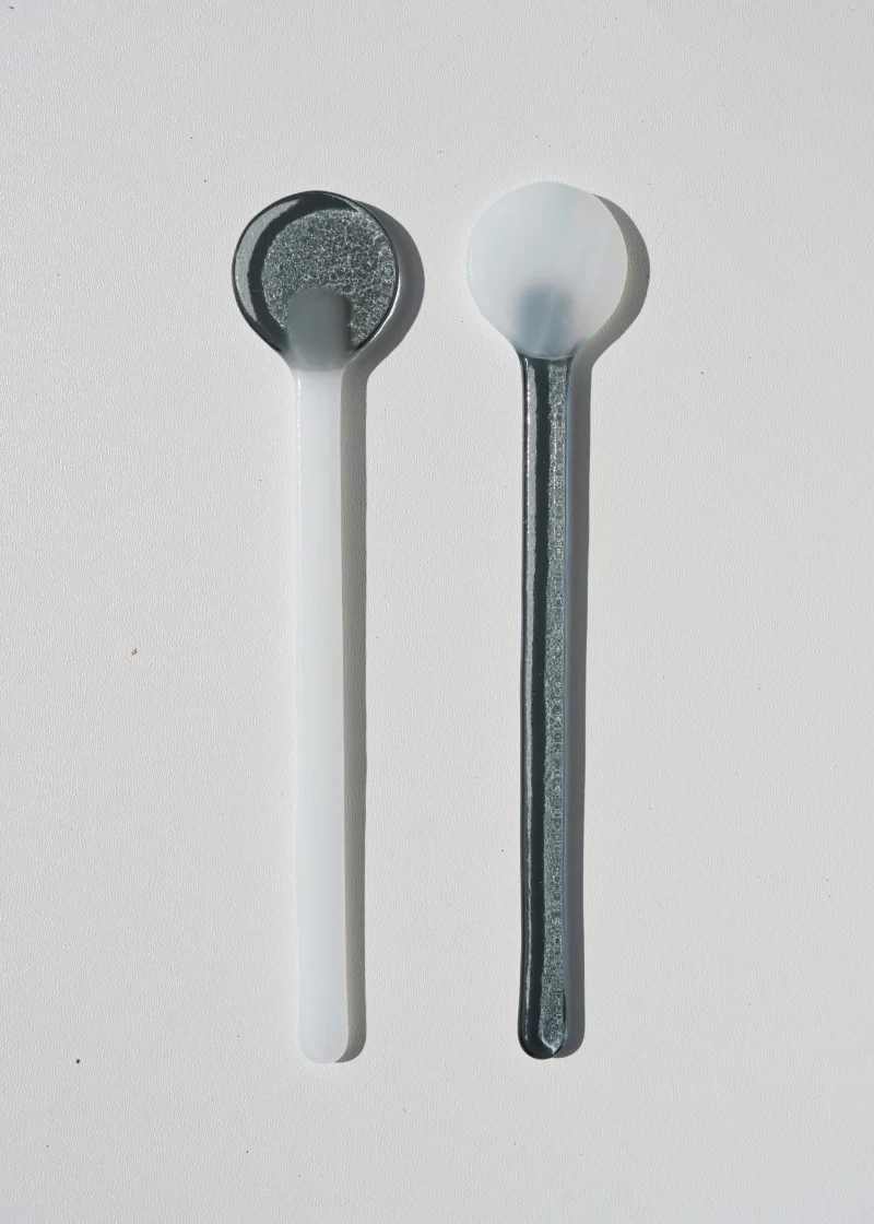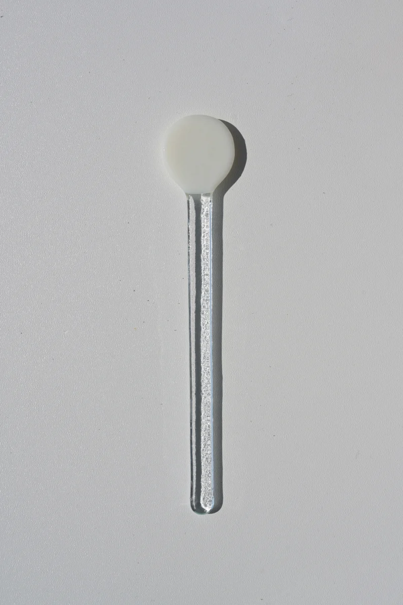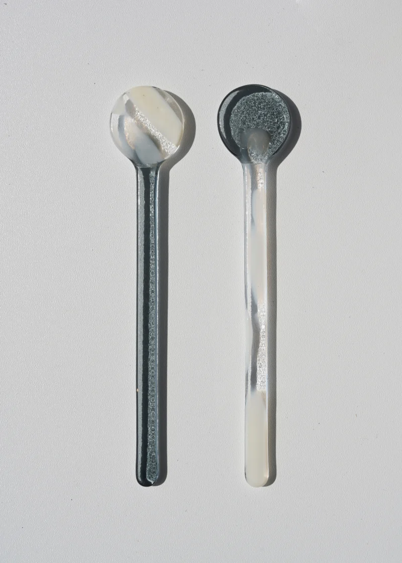 Each mixing spoon is individually composed. The carefully selected glass elements combine into unique, tactile tools that go beyond function. Ideal for stirring drinks, complementing food presentations, or adding a sculptural accent, especially valued by food stylists and visual creatives.