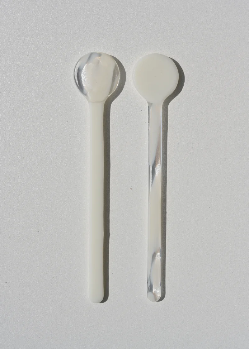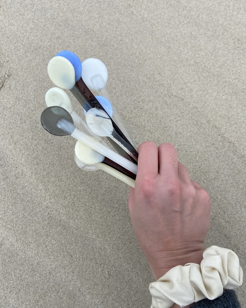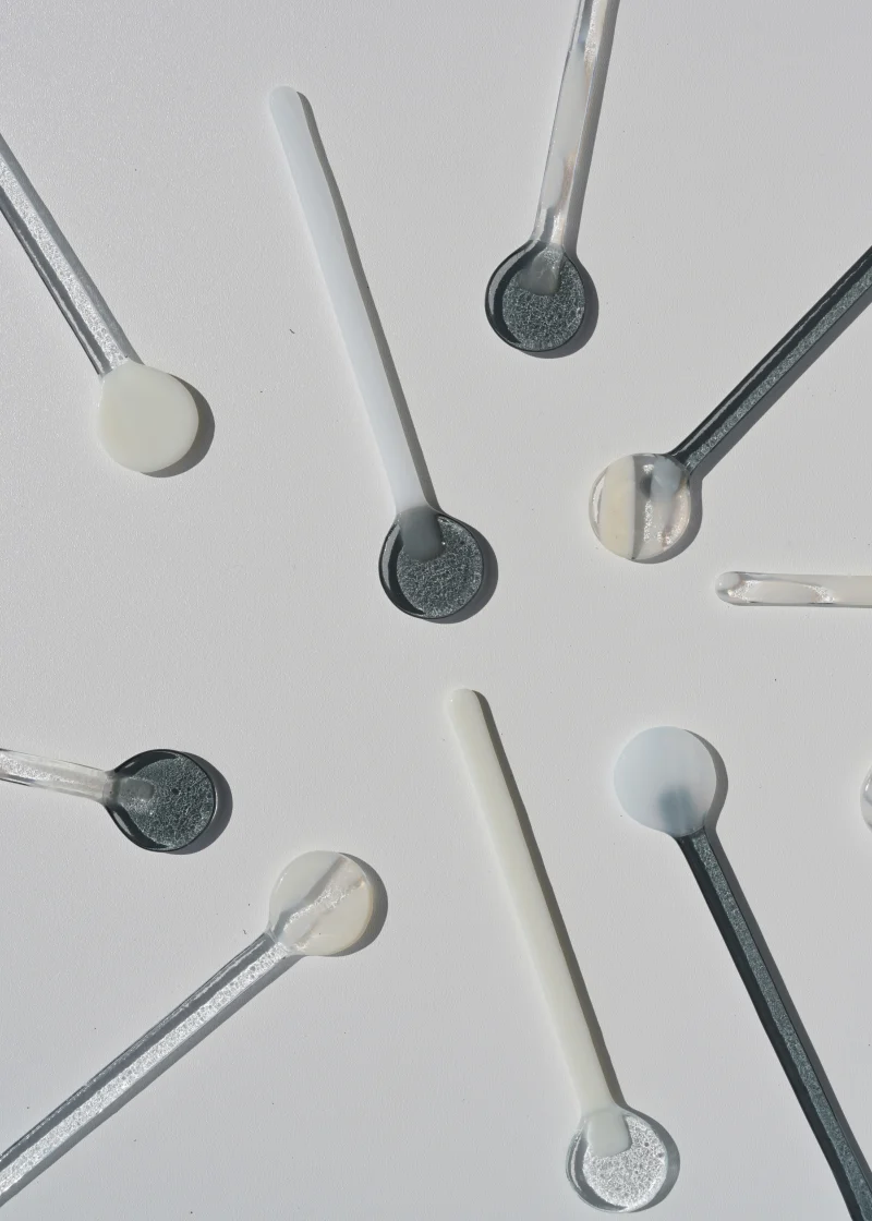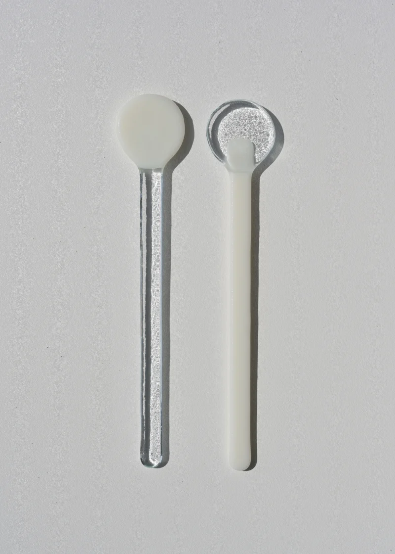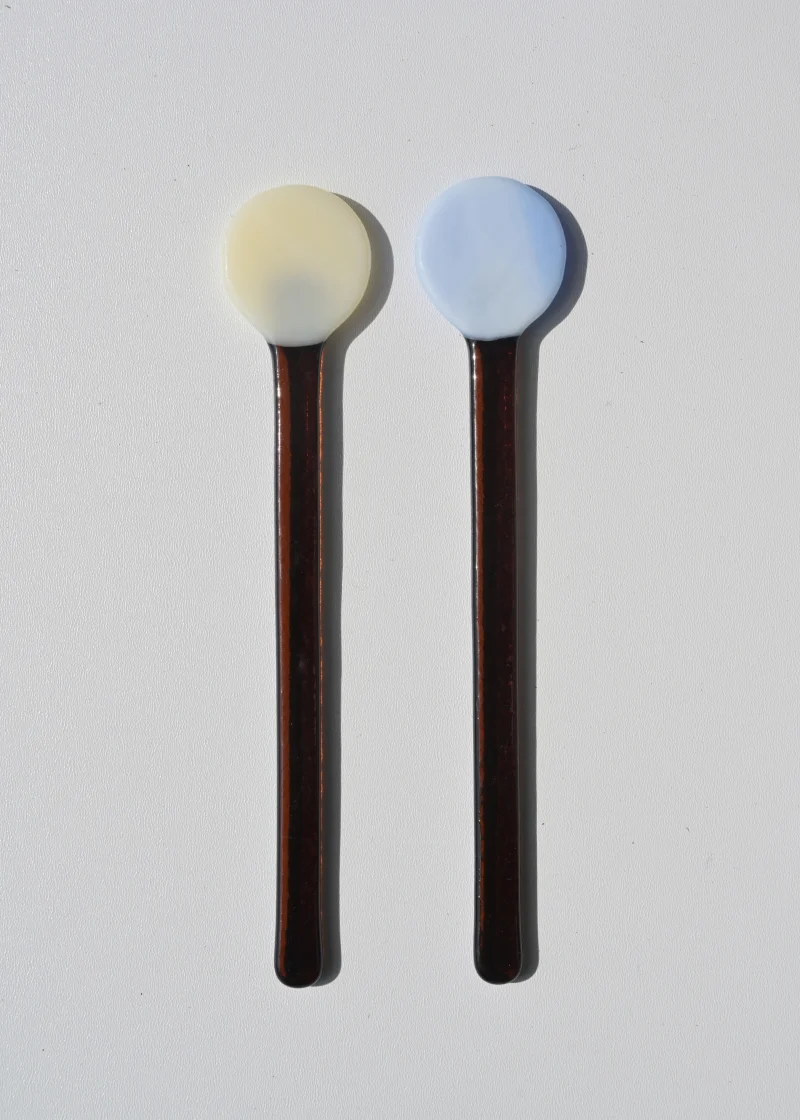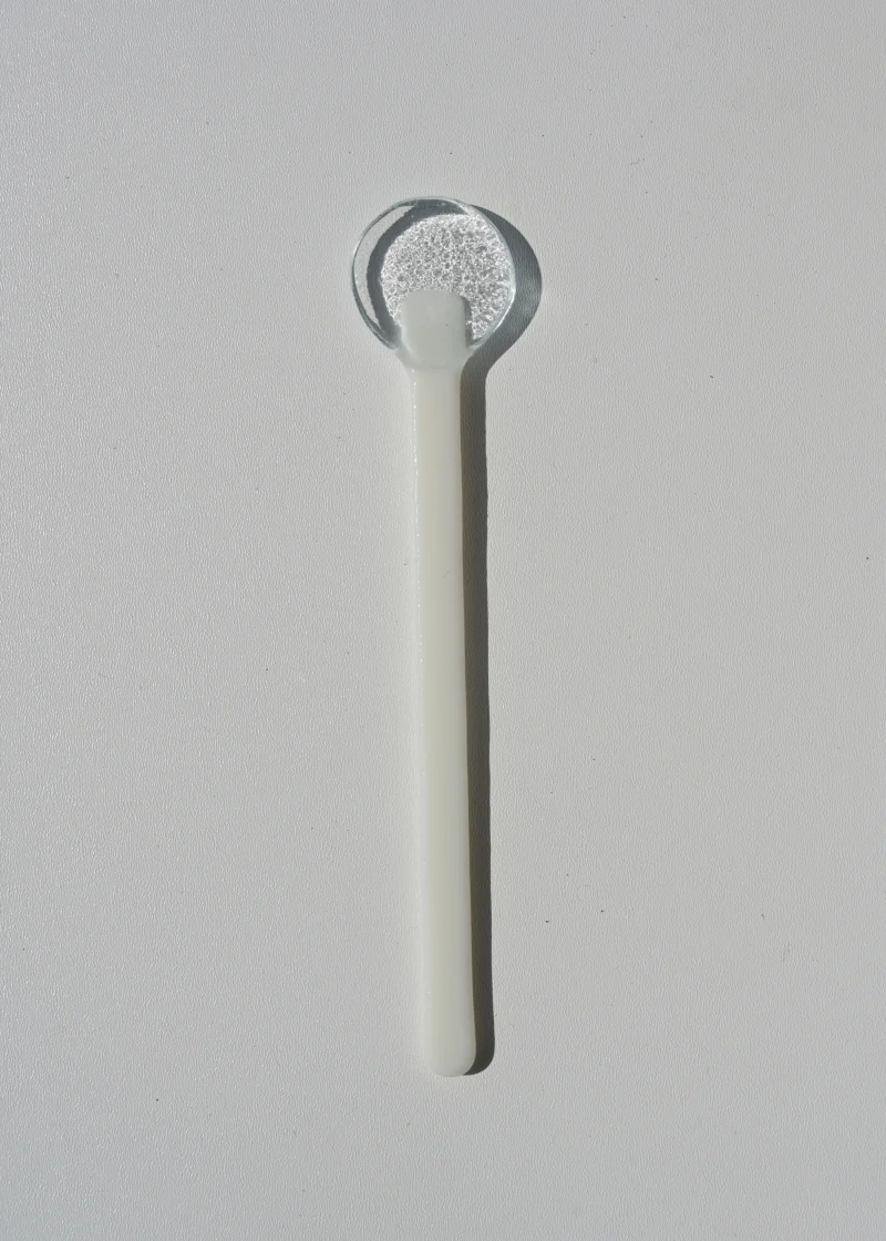 Each mixing spoon is individually composed. The carefully selected glass elements combine into unique, tactile tools that go beyond function. Ideal for stirring drinks, complementing food presentations, or adding a sculptural accent, especially valued by food stylists and visual creatives.