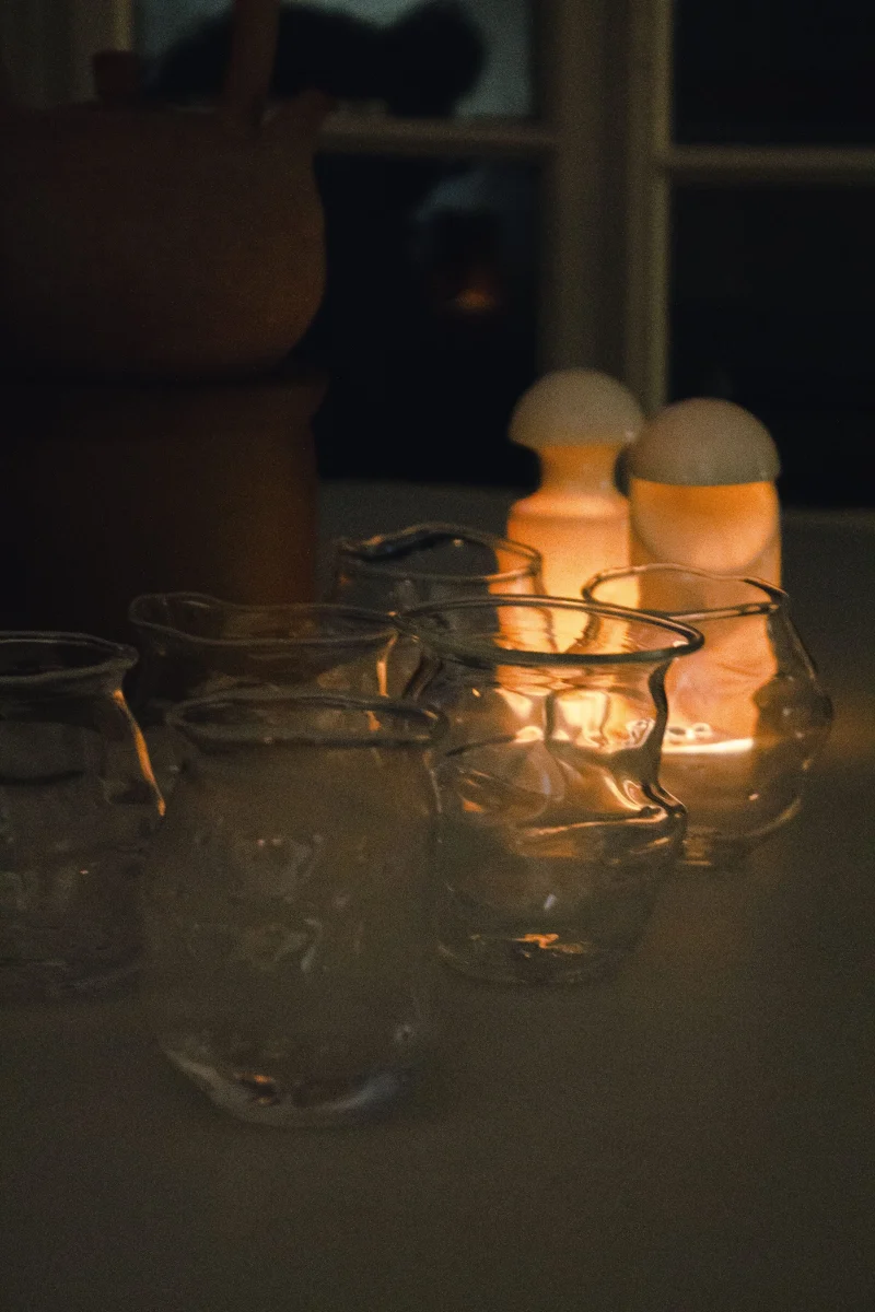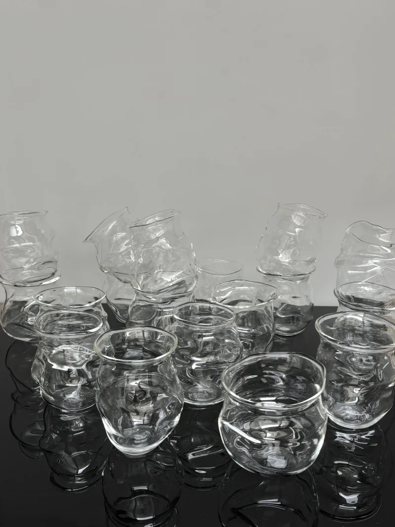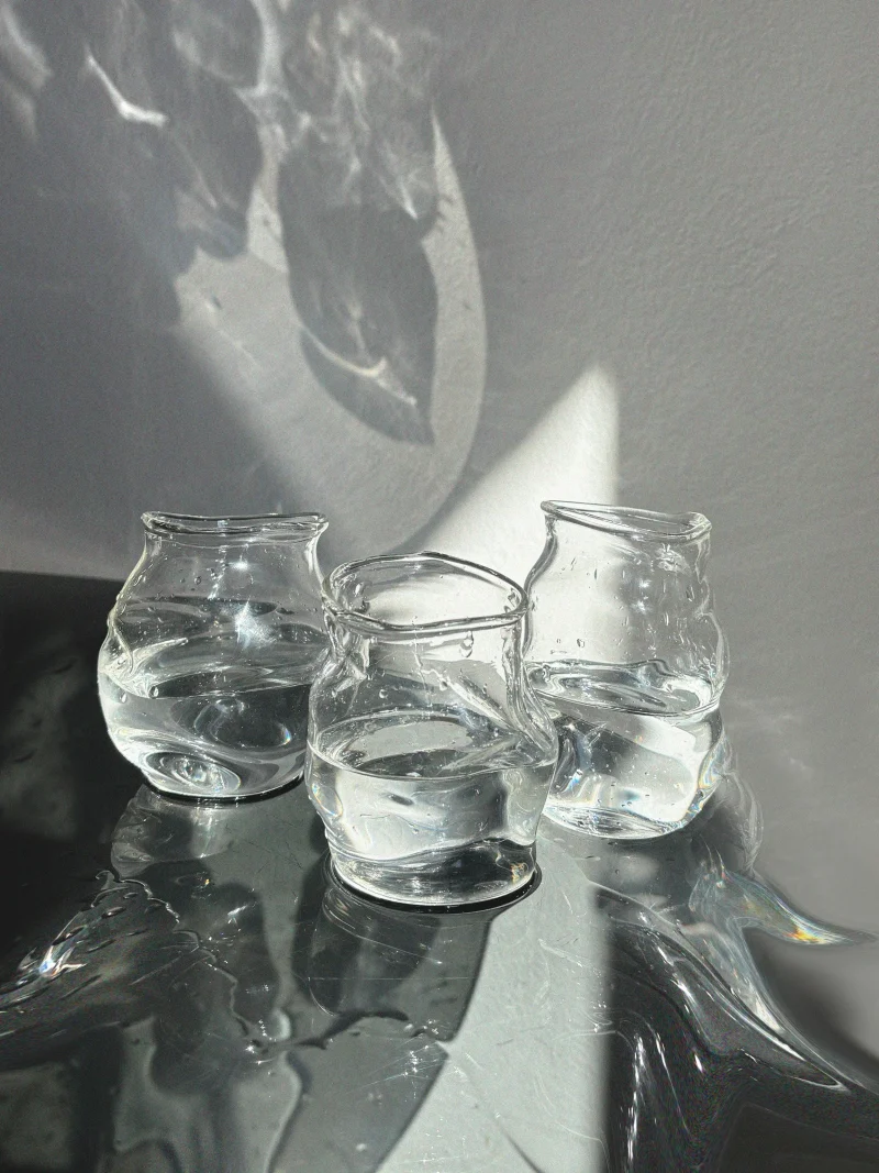 Crafted with care using the traditional blown glass technique, each cup features organic, fluid forms that echo the natural movement of water. Subtle variations in size, shape, and texture are intrinsic to the artisanal process, making every piece truly one of a kind. These imperfections celebrate the beauty of handmade craftsmanship, where no two cups are exactly alike—each holds its own story shaped by the hands that created it.