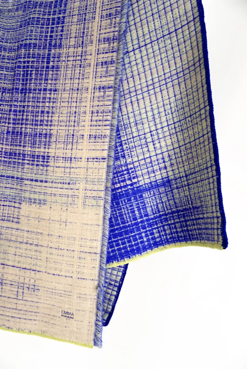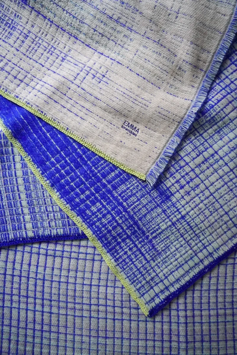 For her limited series of blankets, Emma Terweduwe threads new life into artisanal crafts of the past, combining her sensibility for strikingly contemporary graphic designs with the traditional process of jacquard weaving. In collaboration with B & T Textilia – a high-end local weaving company – Terweduwe presents two plaid blankets woven in wool, mohair, and cotton, each uniquely finished by hand.