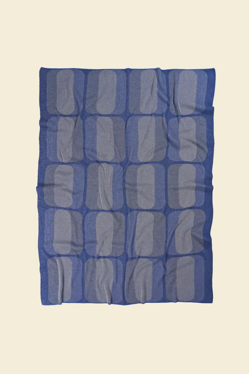 The geometric pattern by Leigh Bagley is influenced by modernist abstraction and contemporary design. Working with BOI knit’s technical expertise, Leigh reimagines his layered geometric shapes using a reduced colour palette that explores the organic irregularities of material production.