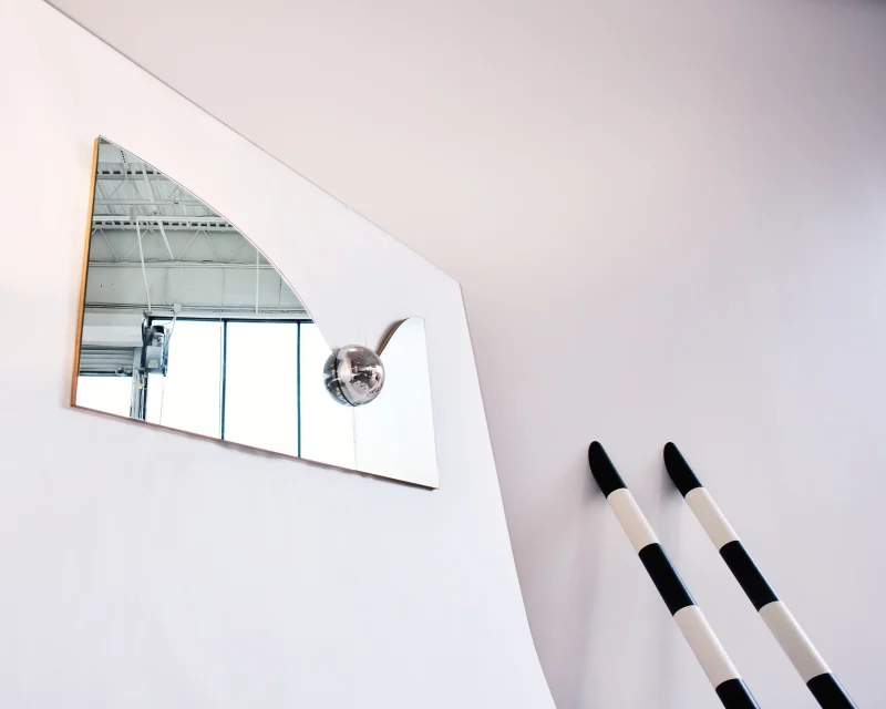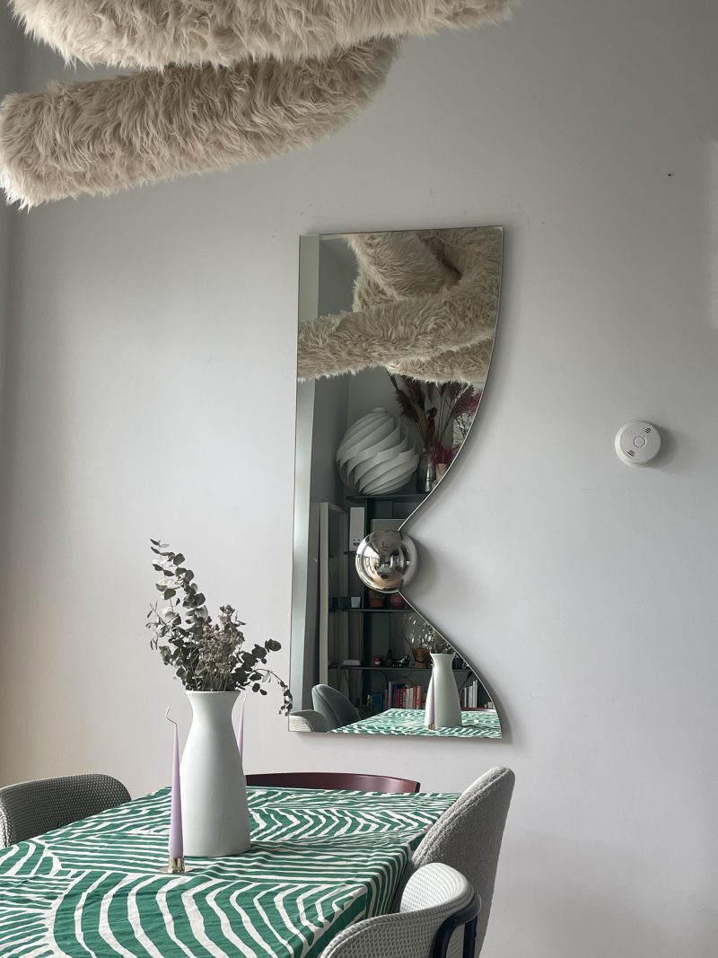The Gravity Mirror captures the fleeting, poetic moment just as a ball meets the surface of still water—suspended in time, frozen in motion. Drawing inspiration from the ripple of impact, the mirror’s subtly concave surface and the raised, orb-like form create a visual tension between stillness and movement. This sculptural illusion evokes the sense of gravity at work, as if the mirror itself is reacting to an invisible force—pulling, bending, and responding to the presence of the sphere.