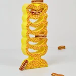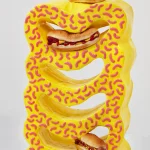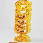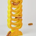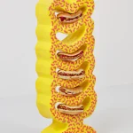 The “Greasy Hot Dog Shelf” is part of the “Dazzling Lights” and “Storage Solutions”, and the result of a quick sketch from Hugo Béhérégaray in order to be more suitable to Diego Faivre’s working style with smoother lines. The shaping was not originally intended for some delicious hot dogs, but because of the yellow mustard colour choice, the name was instantly adapted to that gorgeous snack.