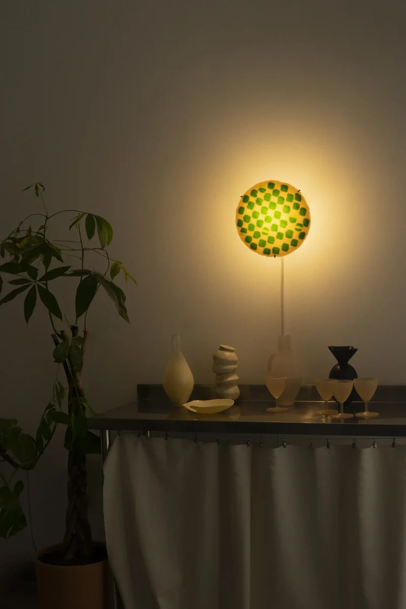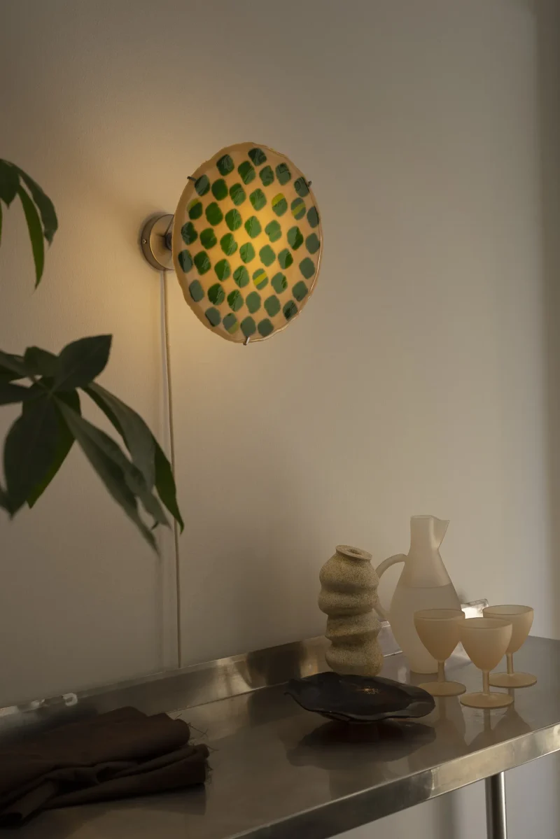 Handcrafted by Valencia-based studio, Los Objetos Decorativos, this sculptural wall light, where the composition and coloring have a strong presence, works both illuminated and not. The light transforms it into an incident point that changes with the rest of its setting.