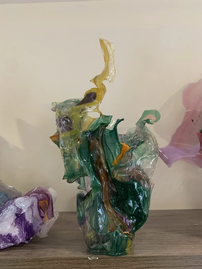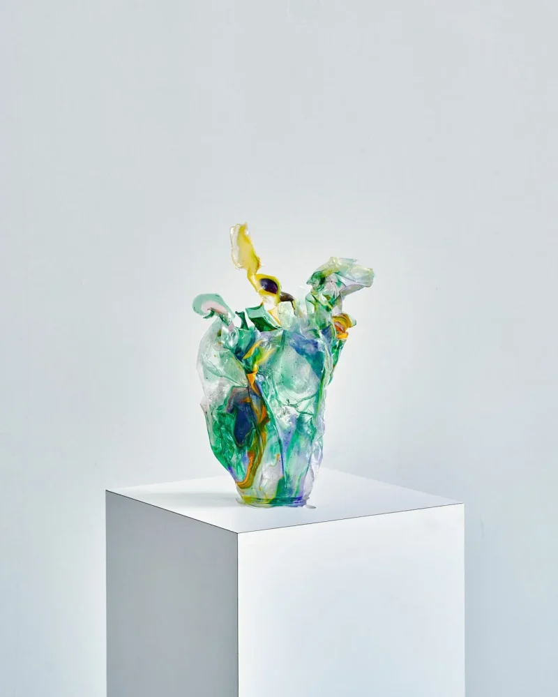 one-of-a-kind works using nontraditional processes and techniques, sculpting bioplastic and natural materials into three dimensional forms. Artistic home decor such as tabletop planters and lighting sculptures that conjure the appearance of textiles frozen in time. Each one-of-a-kind piece is inflected with biomimicry to emphasize nature’s dominance.