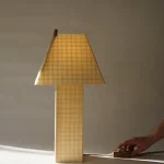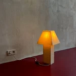 Grid Lamp by Basia Pruszyńska is an exploration of how textile can transcend its traditional, two-dimensional role and become a structural element that comes into dialogue with light. By developing a technique of working with raw cotton textile and bio-resin I played with shadows and layering of textile that creates the distinct grid/ checkered pattern of the lamp.