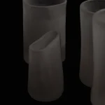 This deliberate approach manifests in the vase’s edge, where rough and smooth textures coexist in striking contrast. Colors merge harmoniously, only to separate again, while the surface shifts between faint opacity and delicate transparency. The interplay of these elements captures the essence of transformation and the beauty found in imperfection and variation.
