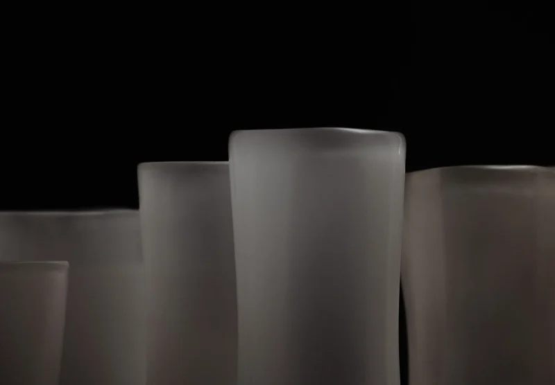 This deliberate approach manifests in the vase’s edge, where rough and smooth textures coexist in striking contrast. Colors merge harmoniously, only to separate again, while the surface shifts between faint opacity and delicate transparency. The interplay of these elements captures the essence of transformation and the beauty found in imperfection and variation.