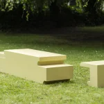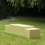 Rather than hiding construction details, the half-lap joint is projected onto the outer contours of the bench and side tables. Structural logic becomes form, and making becomes meaning. Each piece reads as a solid, architectural volume, while revealing the traces of joinery through its stepped silhouette.