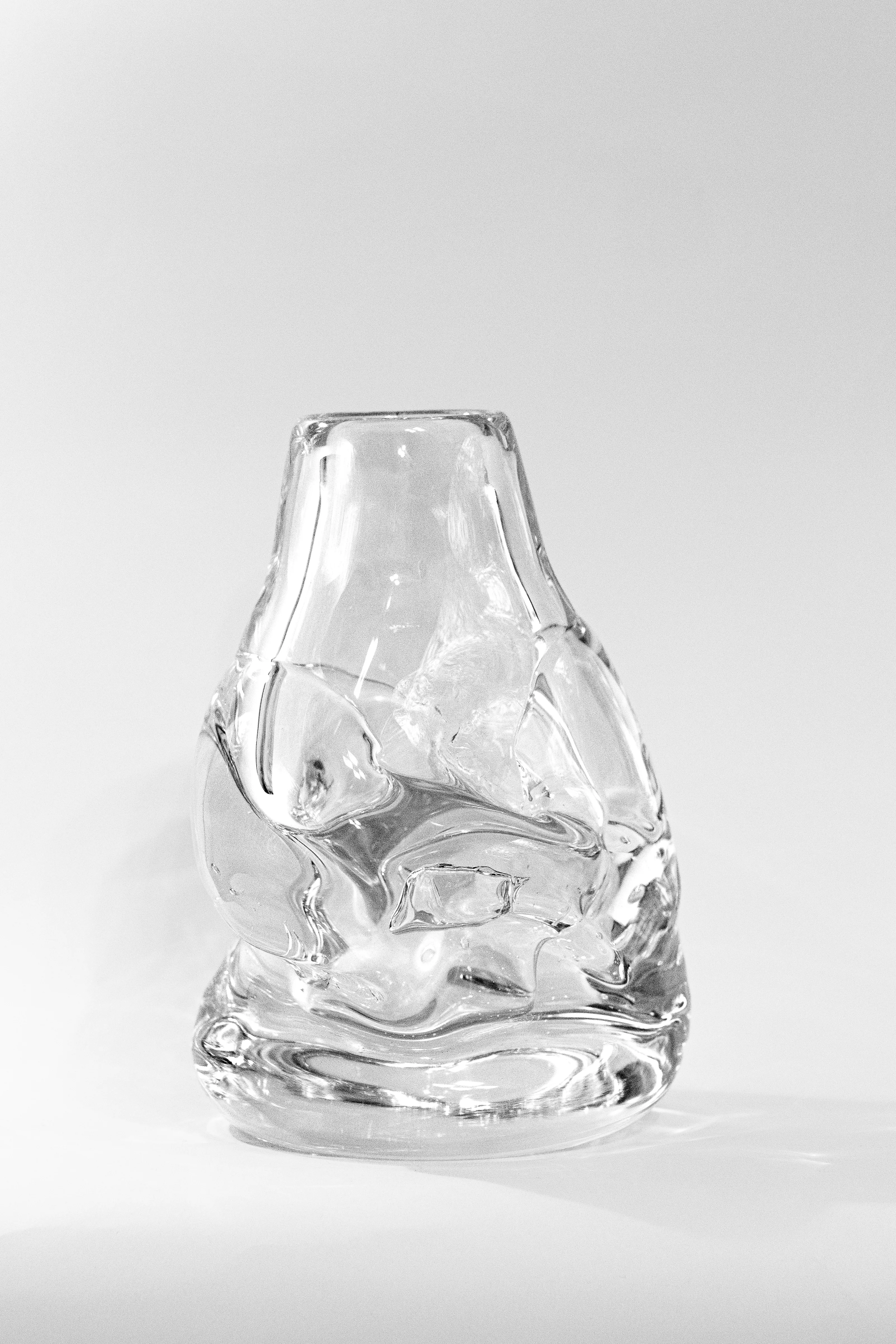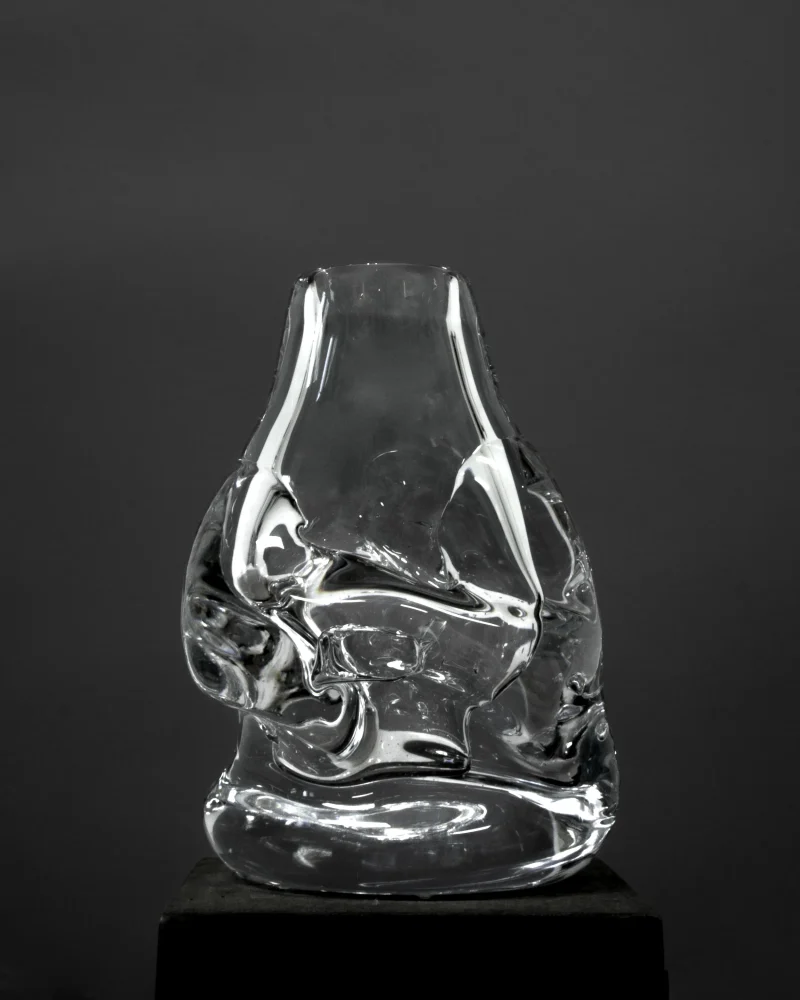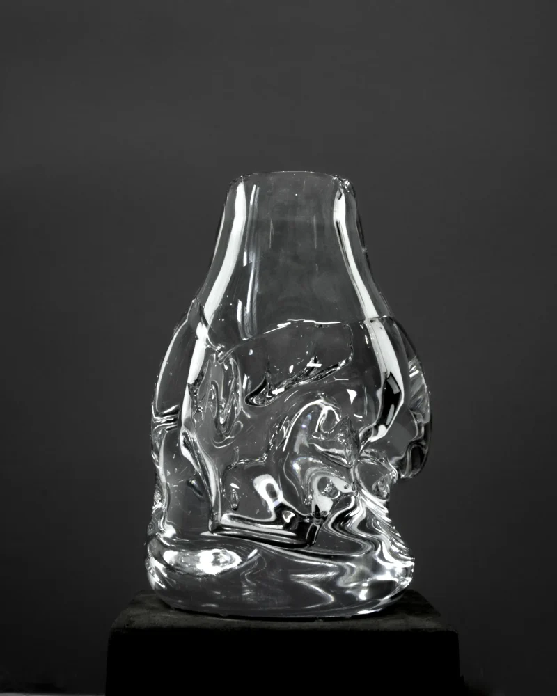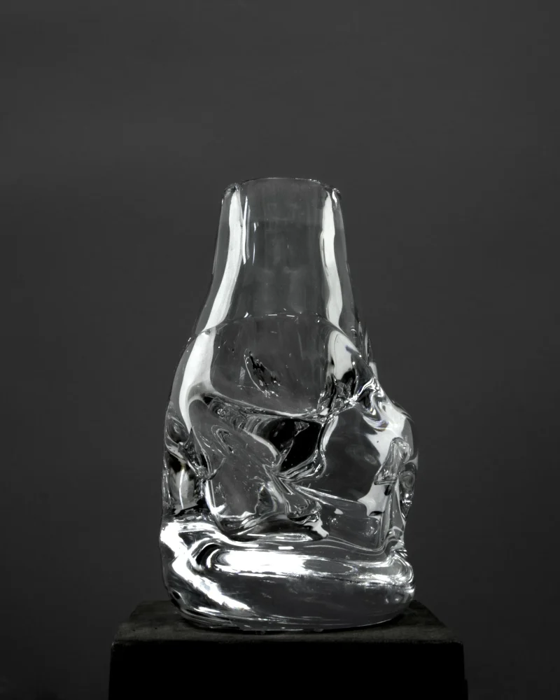 Masterfully created by Aleksandra Zawistowska and her dedicated team of craftsmen, the creation benefits from a daring and experimental method of design. By incorporating natural materials like stones and ceramics, the team achieves a rough, organic shape, giving the vase a distinctive texture and form that sets it apart from traditional glassware. It is a testament to Aleksandra’s commitment to deconstructive design principles and individual expression.