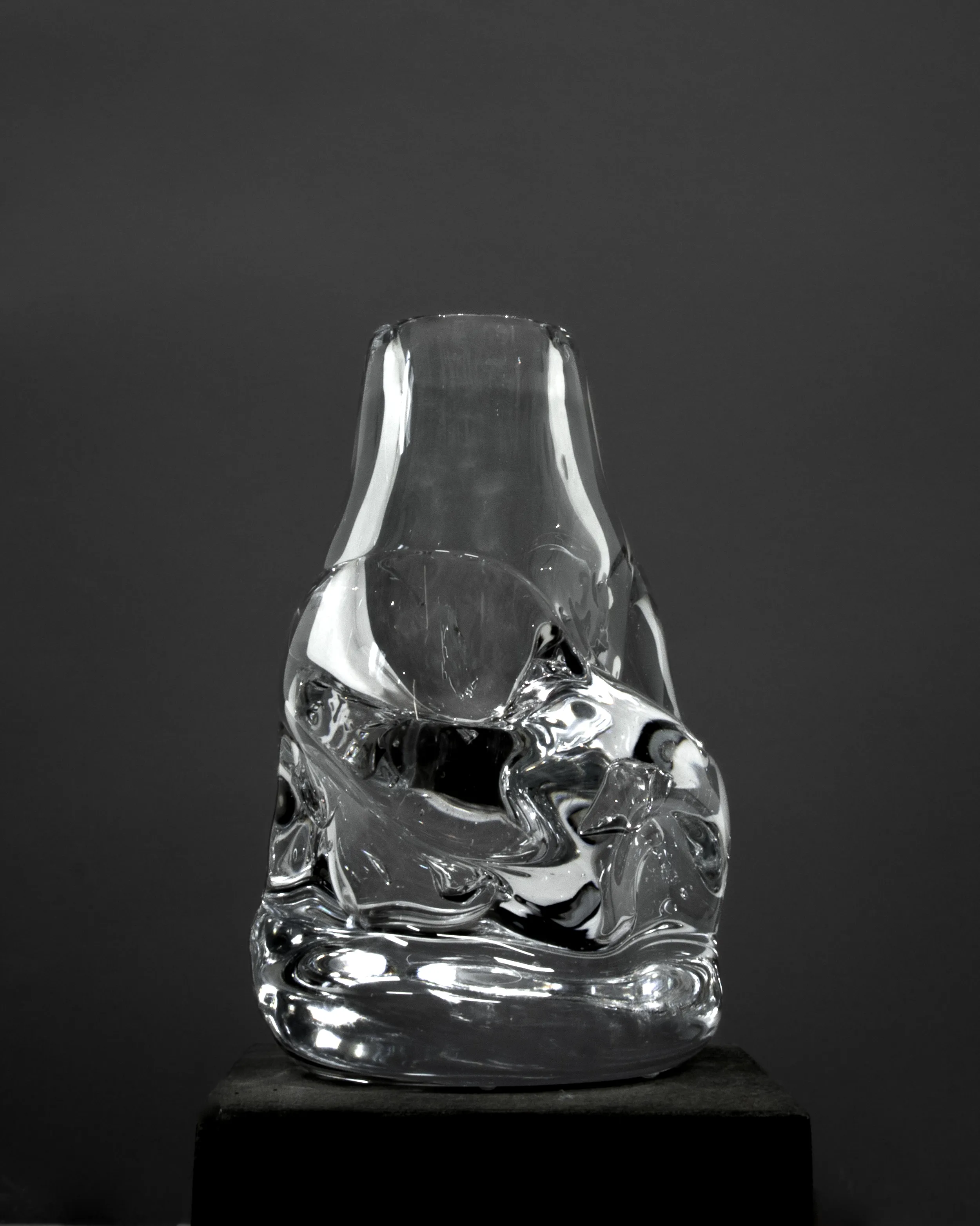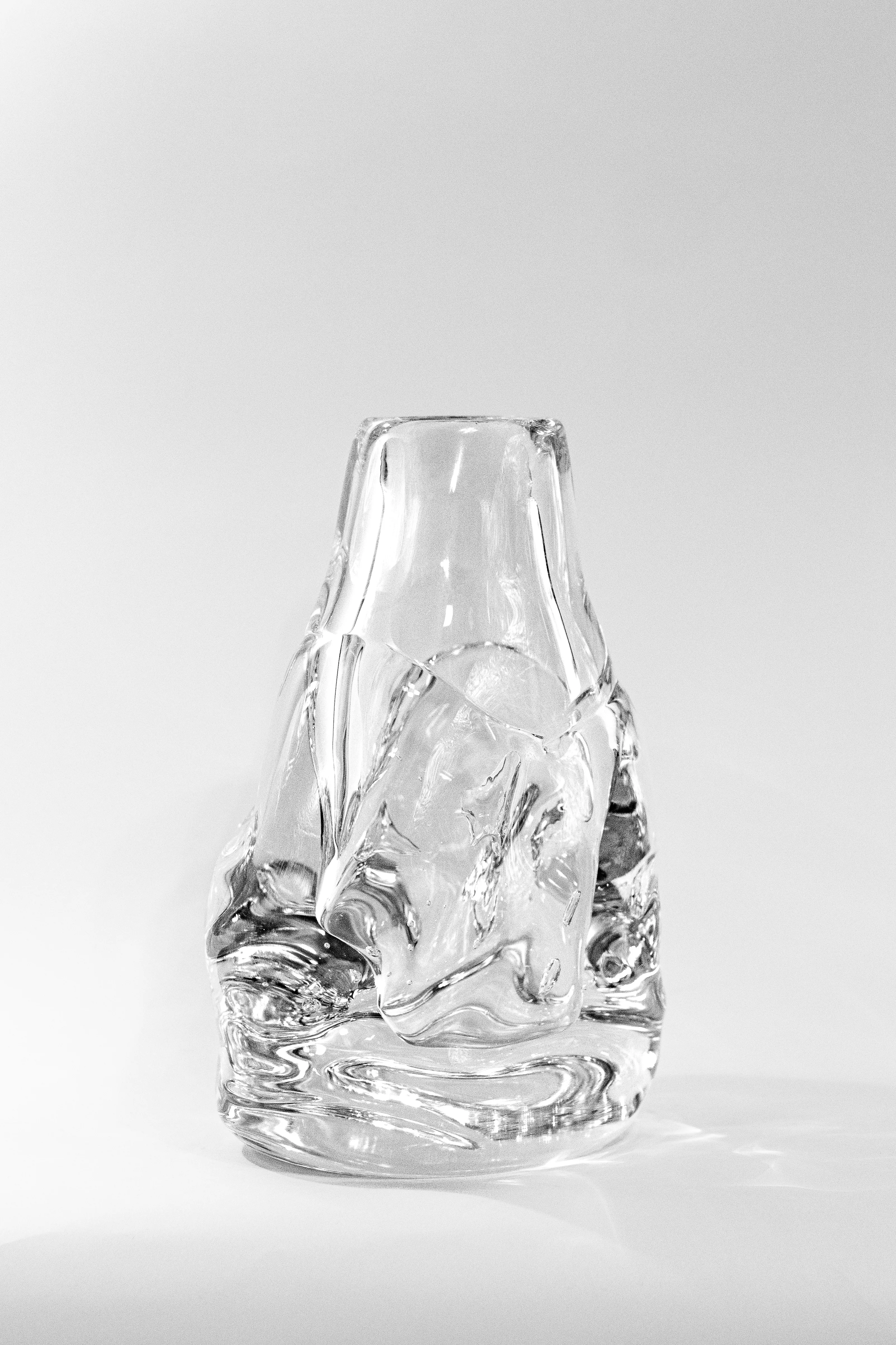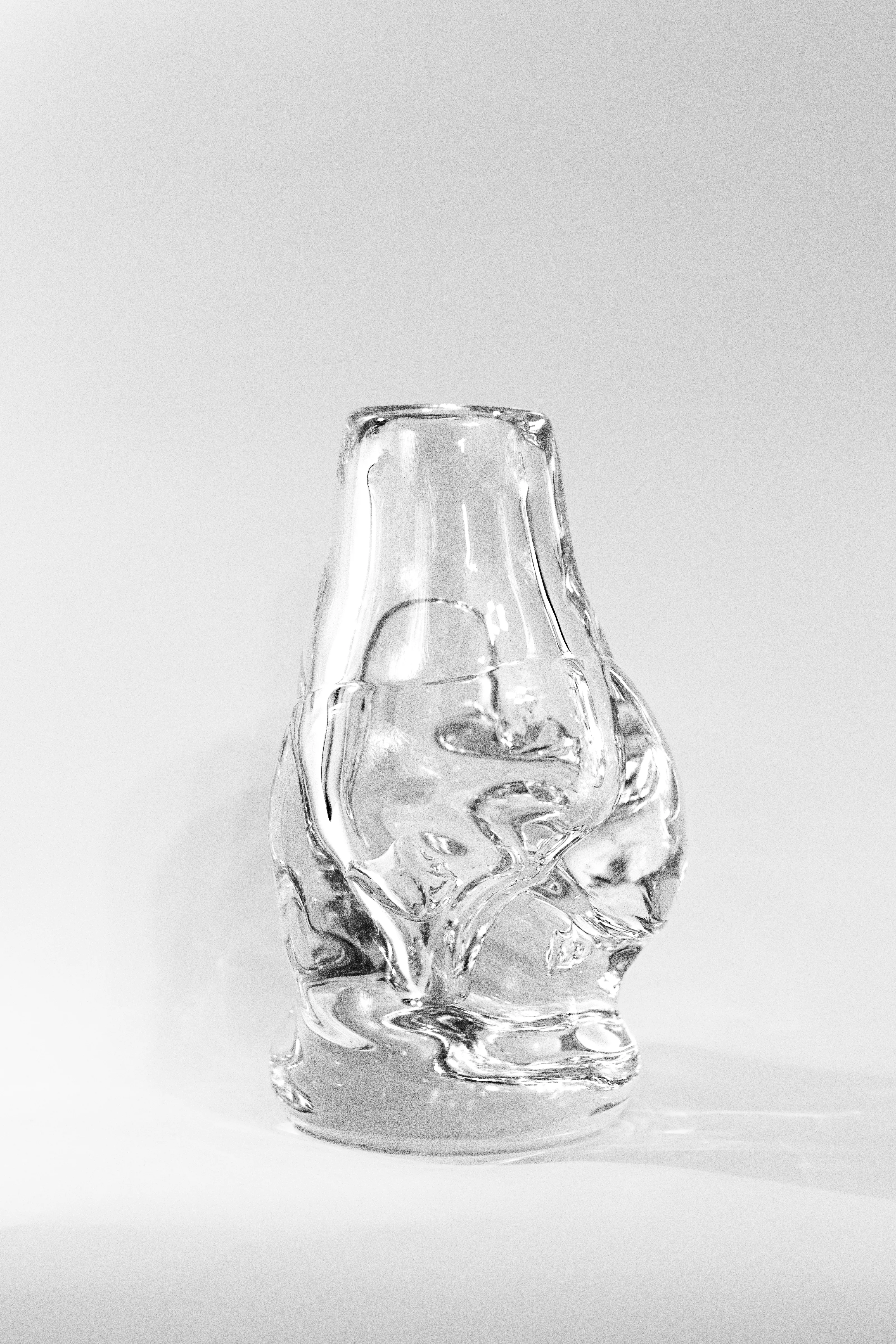 Masterfully created by Aleksandra Zawistowska and her dedicated team of craftsmen, the creation benefits from a daring and experimental method of design. By incorporating natural materials like stones and ceramics, the team achieves a rough, organic shape, giving the vase a distinctive texture and form that sets it apart from traditional glassware. It is a testament to Aleksandra’s commitment to deconstructive design principles and individual expression.