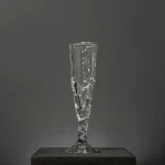 The glass may contain remains of sand, stones and wood used to shape the object due to the experimental process of creation. The glass may contain air bubbles, sharp edges and minor pigment scratches.