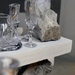 The creation of these glasses involves an innovative and experimental approach. By utilizing natural materials like stones and ceramics, the team is able to mold the glass into unique, rough, and organic shapes. This method results in a fascinating interplay of textures and forms, making each glass not just a vessel for champagne but a conversation piece in its own right.