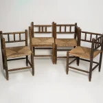 A fine French Provincial corner chair in stained oak with a handmade cane seat. Classic bobbin turned legs and in a overall fine vintage condition. Made in the 19th century. Lovely handmade chair that will complement many interior styles. A modern, classic or an Art Deco home decor. We have a few similar chairs. Check the last picture please.