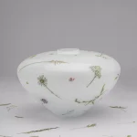 Mouth-blown unique vase using opaque white opal czech crystal glass, with a story of wildflowers.
