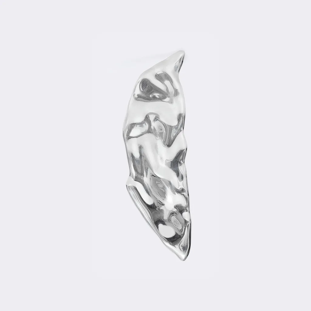 Handcrafted through a process of manual shaping and metal casting, this piece is available in solid brass (gold finish) or aluminum (silver finish).
