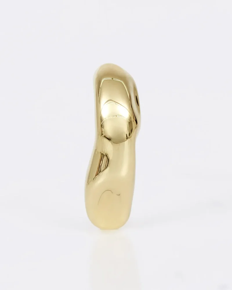 Handcrafted through a process of manual shaping and metal casting, this piece is available in solid brass (gold finish) or aluminum (silver finish).