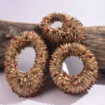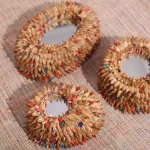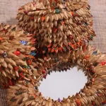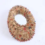 Introducing the “Harmony Bloom Mirror” by MitiMeth. A unique creation of the MitiMeth studio designed by Marta Giardini and powered by co/rizom. Handcrafted from invasive water hyacinth stems, upcycled textile waste, and papier-mache, this mirror exemplifies sustainability and elegance. Ukid Iso translates to mirror in the Efik-Ibibio language. Each piece is meticulously created by skilled artisans, ensuring a unique blend of natural textures and vibrant colors. The Hyacinth Bloom Mirror not only serves as a functional decor item but also as a statement piece that reflects your commitment to environmental preservation and social impact. Perfect for adding a touch of rustic charm and modern sophistication to any space, this mirror is a testament to the beauty of upcycled materials and thoughtful design. Embrace the Bloom of nature and artistry with the Hyacinth Bloom Mirror by MitiMeth, where every glance reveals the story of sustainability and creativity. Ideal for eco-conscious consumers seeking unique, handmade decor that makes a difference.