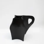The black lacquer finish lends a contemporary edge to this traditional craft, its glossy surface catching and reflecting light to emphasize the organic, asymmetrical silhouette. Each piece bears the unique character of its hide—subtle variations in texture and tone that ensure no two vases are identical.