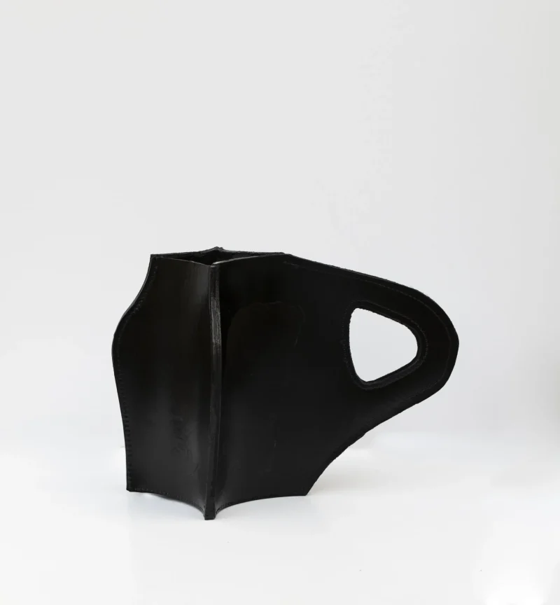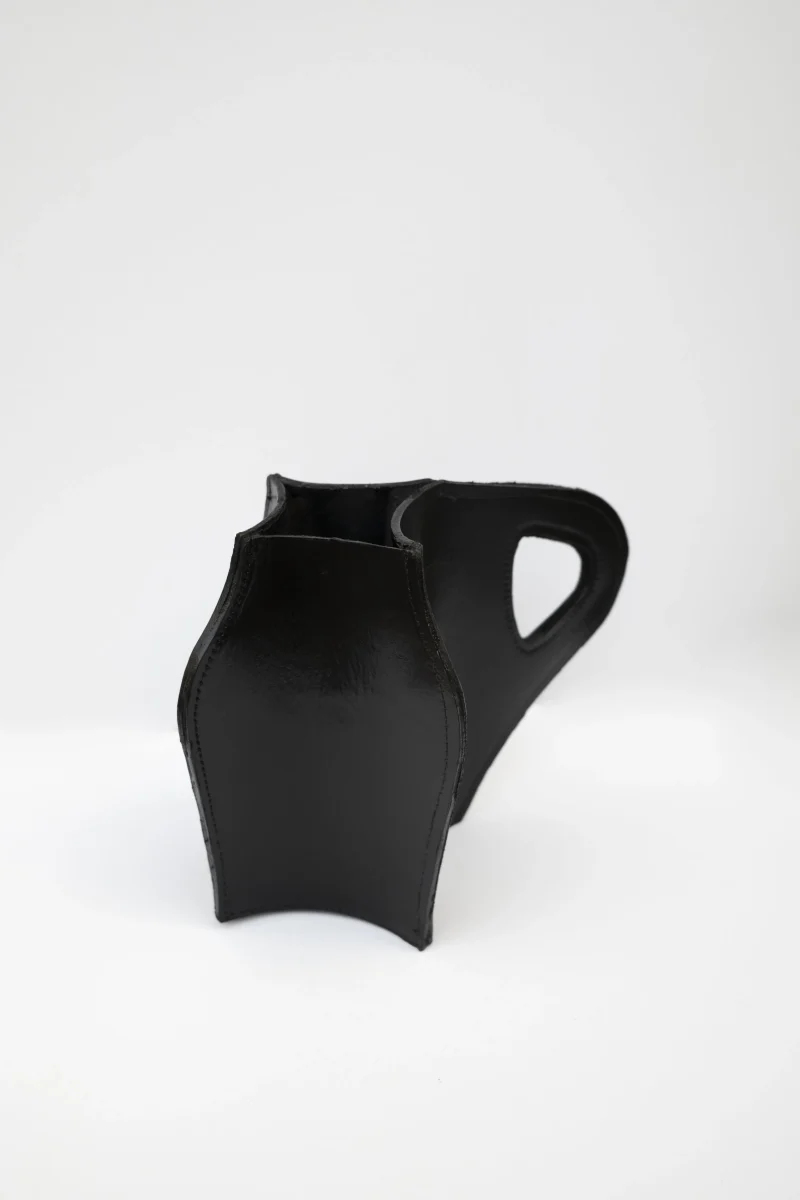 A sculptural vessel that challenges conventional notions of material and form, this handcrafted vase transforms supple cowhide into a rigid, functional object through an ancient preservation technique. The leather is carefully treated and hardened with animal fat, creating a naturally waterproof interior that allows the vase to hold fresh flowers while maintaining its architectural presence.