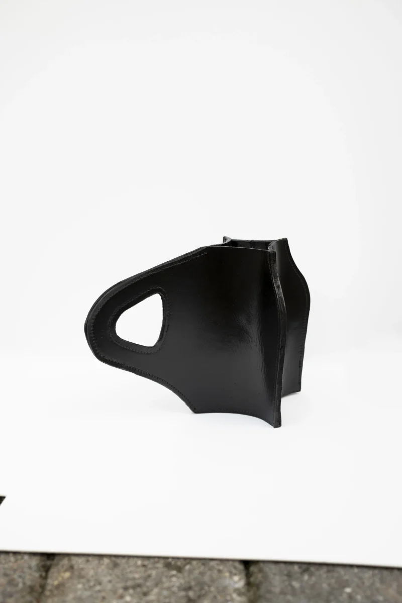 The black lacquer finish lends a contemporary edge to this traditional craft, its glossy surface catching and reflecting light to emphasize the organic, asymmetrical silhouette. Each piece bears the unique character of its hide—subtle variations in texture and tone that ensure no two vases are identical.