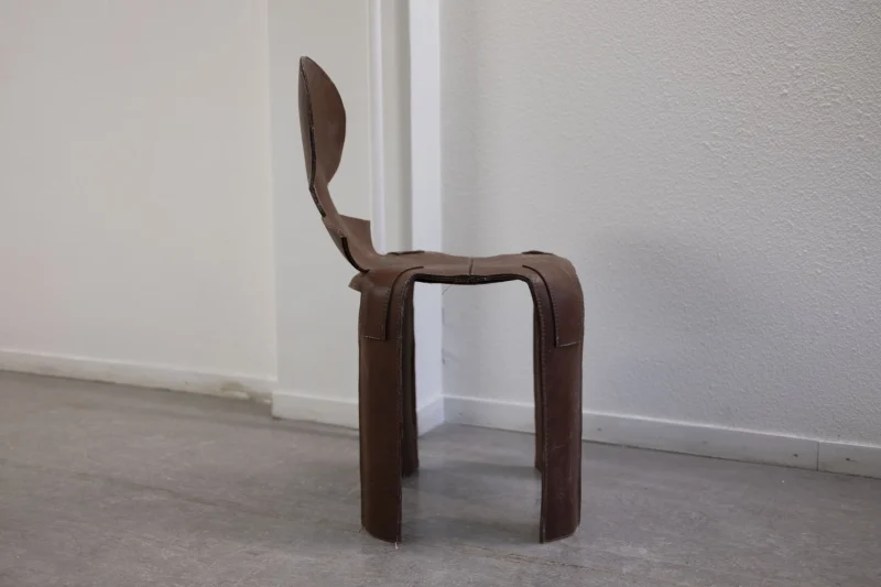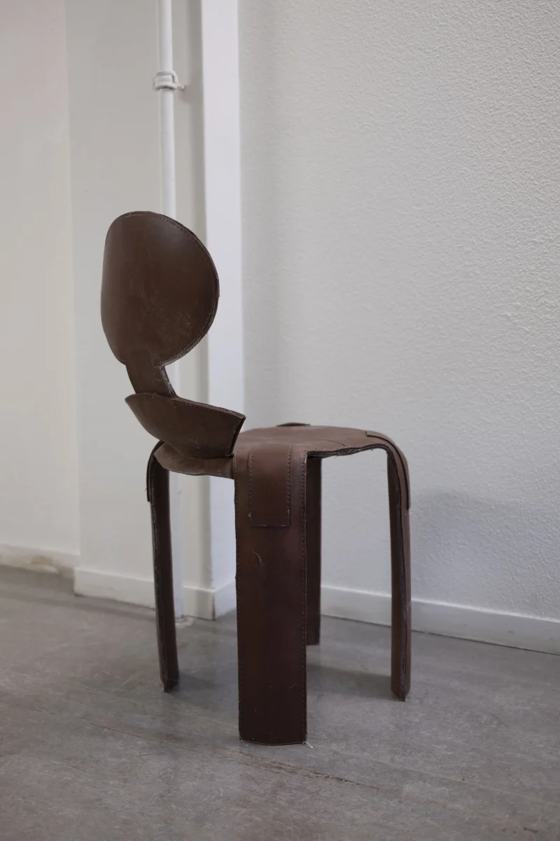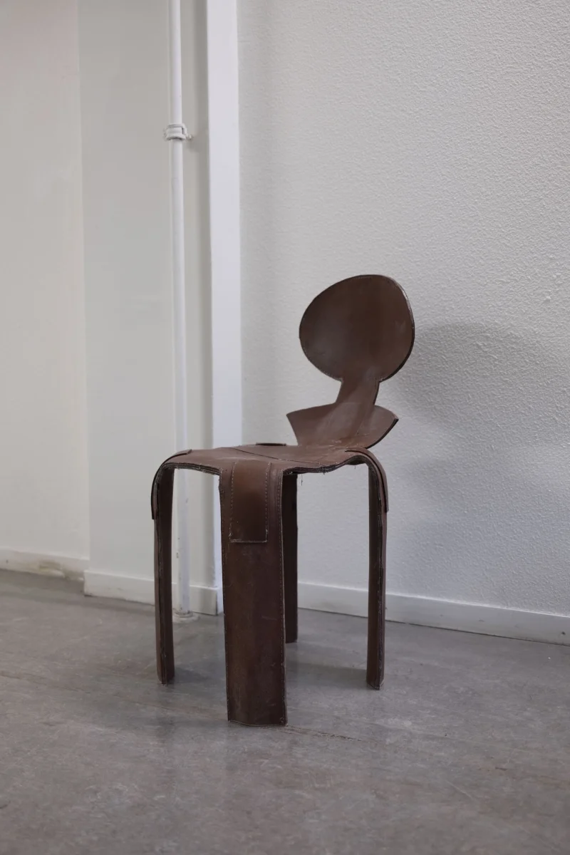 This chair was made by Emil Keller using second grade cowhide and animal fat for hardening.