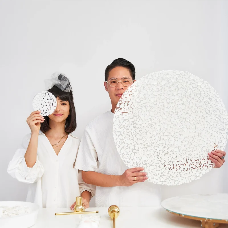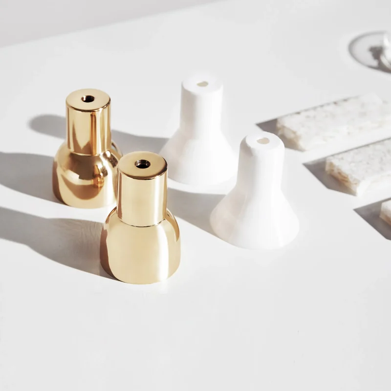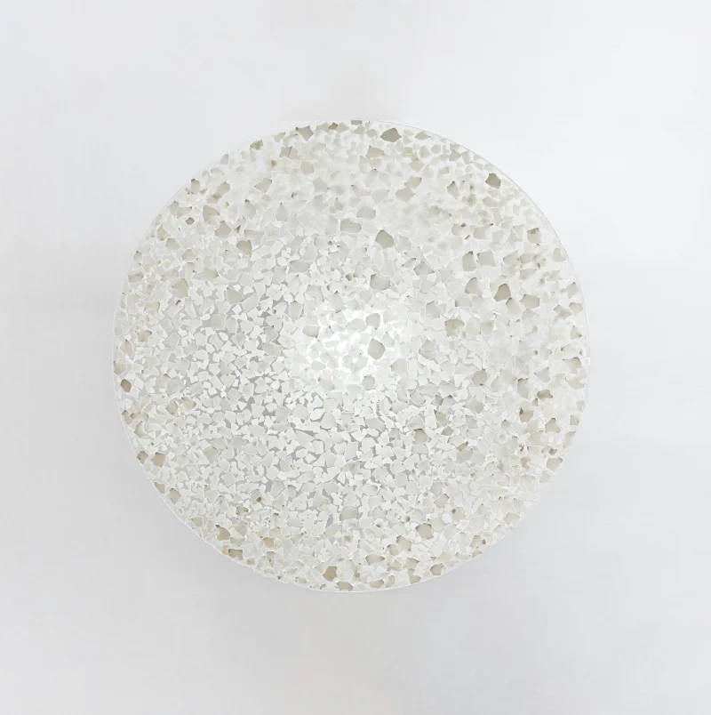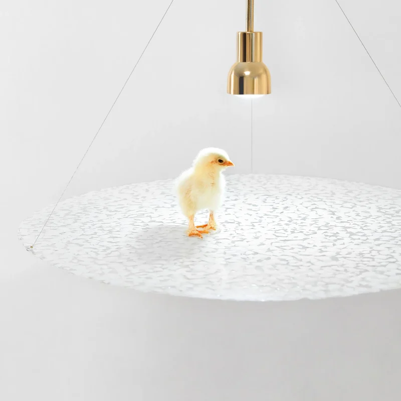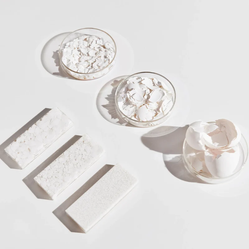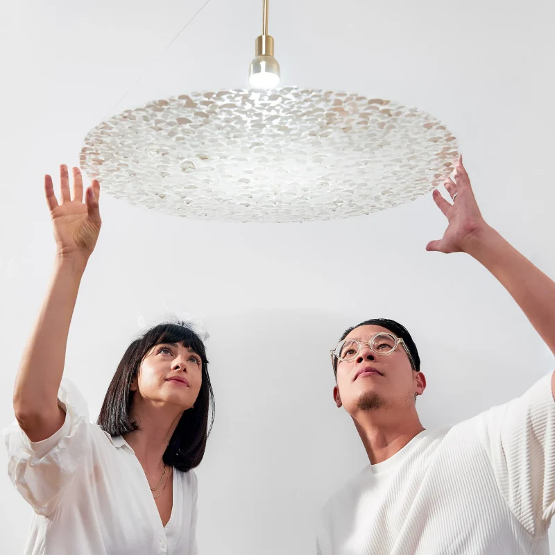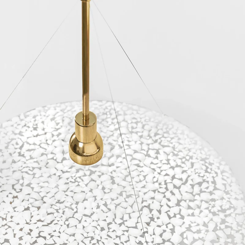 ‘Hatch’ is a ceiling pendant created from eggshell waste which is produced every day in large amounts from egg consumption worldwide. Known as ‘nature’s ceramic,’ eggshells are fragile & strong with a unique light permeability. Each lighting pendant is created from around 60 eggshells collected from homes and local bakeries, then delicately arranged by hand & bonded to create the light diffuser. Inspired by heat lamps used for incubating chicks, the pendant is recreated with an energy-efficient LED light source & housed in a hand-turned polished brass casing. The semi-translucent eggshells are suspended by three fine cables, which provide a unique light-scattering effect when illuminated.