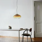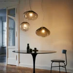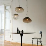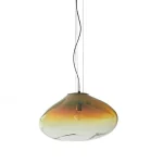 HAUMEA is an elliptical asteroid with a crystalline surface. ELOA’s HAUMEA AMORPH is topped with the clear brilliance of crystal. This brilliance blends down softly into gradients of milky color, which can seem wonderfully polar or soothingly warm depending on its orientation within your gaze. Its shape is quiet, balanced, peaceful, and harmonious, helping it to become one with the room while grounding the space. The integrity of the blown glass gives it the flexibility of looking beautiful anywhere, whether used as a table piece or as a pendant lamp.