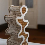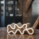 The wooden forms are lightly softened by a series of elegant interwoven folds, which, like a pleated fabric, wrap and drape.