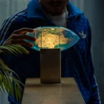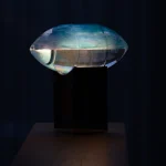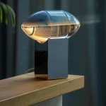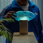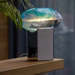Drawing inspiration from ancient concepts, “Helios”, designed by Amsterdam-based designer, Zoran Strijbosch, pays homage to light’s circular dance. The lamp invites interaction, allowing control over light’s intensity by moving the sphere. Similar to how Helios shaped the sun’s path, users become the orchestrators of brightness, creating a captivating dance of light.