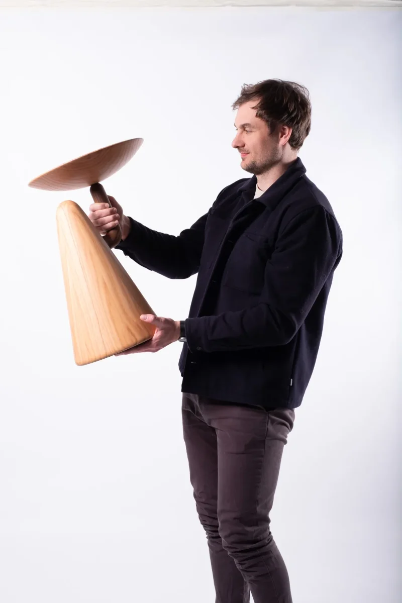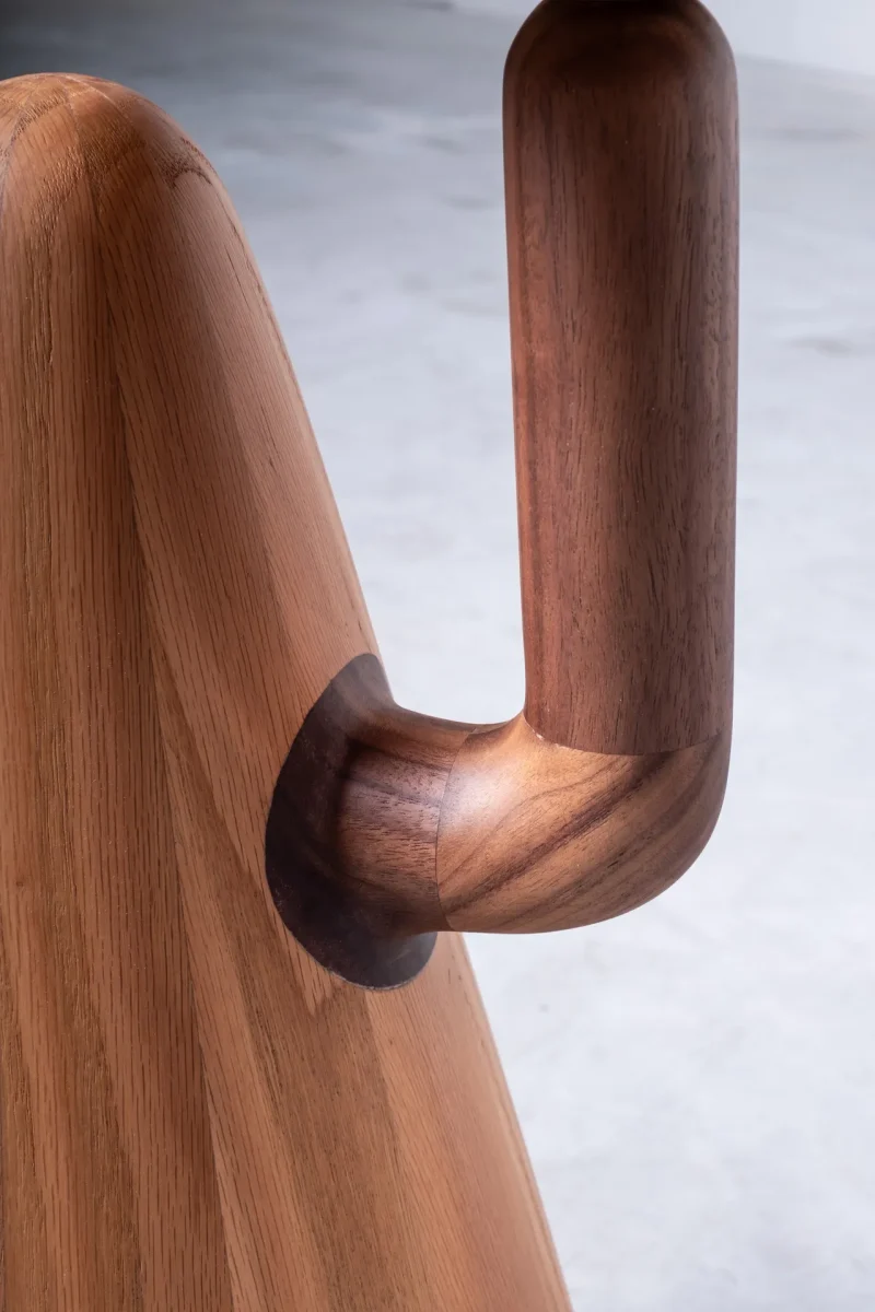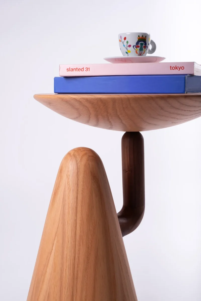The Helping Hand Side Table by noknok is handcrafted from solid oak and walnut, its sculpted form exudes warmth and character. Its curved walnut arm extends in a friendly, supportive gesture— ready to hold your morning coffee, favorite book, or evening cocktail. Both a statement piece and a trusted companion, Helping Hand patiently waits to welcome you back home. Designed to be the perfect companion for your home, its inviting form creates a sense of joy and comfort. The bent arm accentuates the table’s friendly gesture. Helping Hand encourages you to form lasting connections with the objects in your home—becoming a piece that feels like part of the family, there for your daily routines and memories.