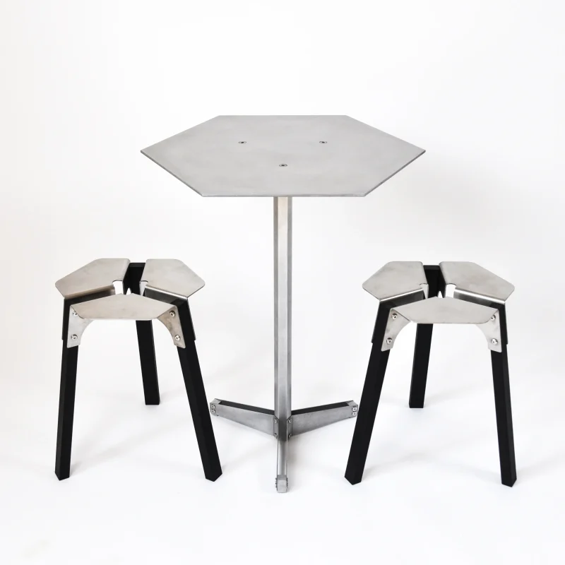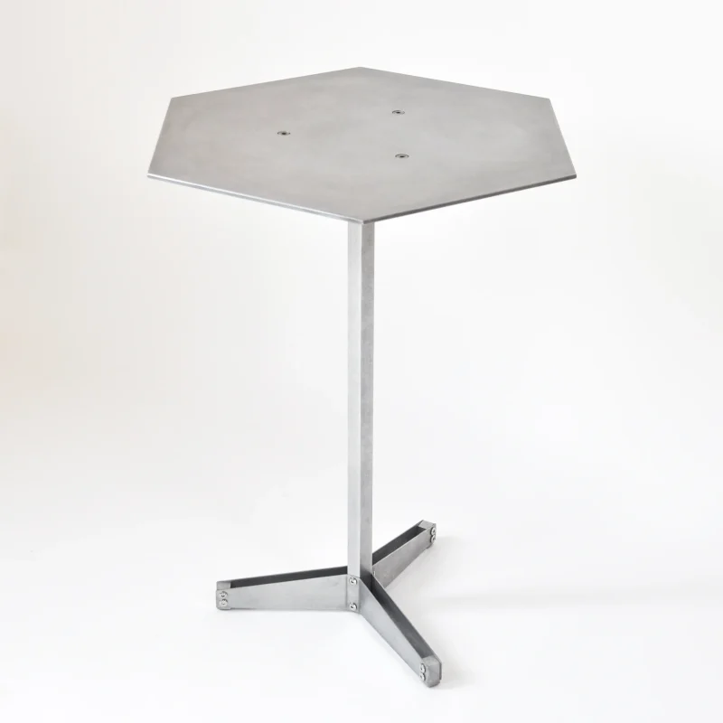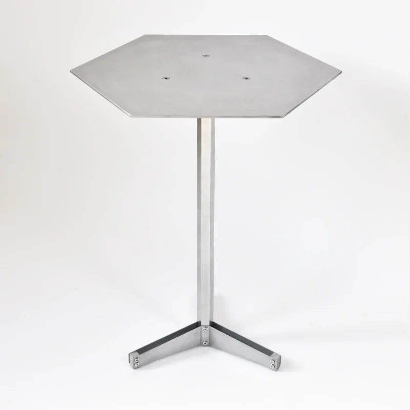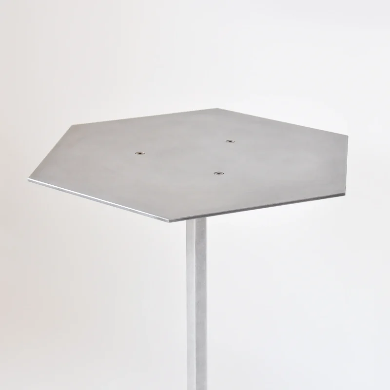 The design of this lamp gave rise to other creations as well as the 'sandwich design concept'. The insertion of assembly elements between two sheets of metal, allowing a dismountable design, became MLK Furniture's signature.