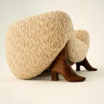 The High Heels Armchair by Deya is crafted from high-quality plush fabric, it offers both comfort and a soft texture, ideal for relaxing. The chair’s most striking feature is its legs, carved from oak wood into the form of high-heeled shoes, blending traditional craftsmanship with a bold aesthetic statement. The use of oak not only contributes to the chair’s stability but also provides a natural, warm finish that contrasts with the plush fabric. Perfect as a statement piece, this chair encapsulates a blend of luxury and artistry, making it an eye-catching addition to any space.