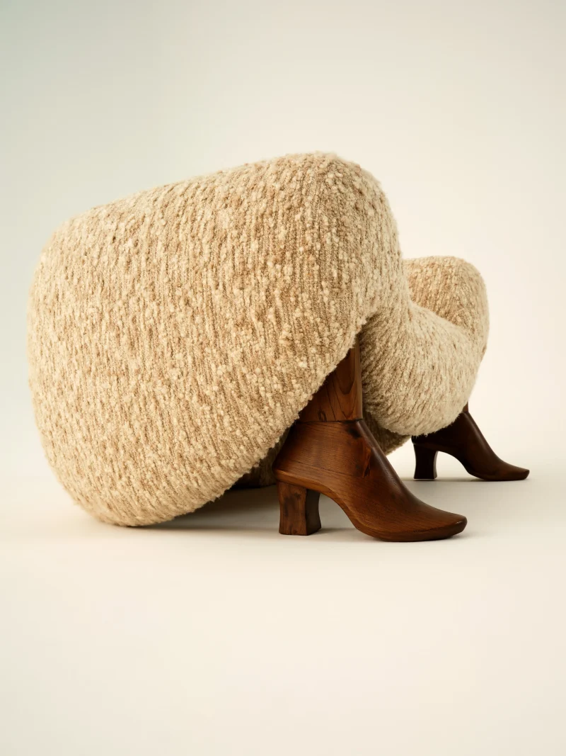 The High Heels Armchair by Deya is crafted from high-quality plush fabric, it offers both comfort and a soft texture, ideal for relaxing. The chair’s most striking feature is its legs, carved from oak wood into the form of high-heeled shoes, blending traditional craftsmanship with a bold aesthetic statement. The use of oak not only contributes to the chair’s stability but also provides a natural, warm finish that contrasts with the plush fabric. Perfect as a statement piece, this chair encapsulates a blend of luxury and artistry, making it an eye-catching addition to any space.