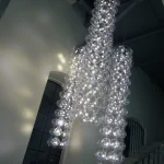 A lightweight lamp “made of air”. HIGH TOWER by PUFF-BUFF is a spectacular marriage of pneumatic technology and LEDs for special lighting effect. Air-filled BUBBLES are made of high quality PVC (made in Germany) with UV filter to preserve the transparency of the lamp permanently. An important quality is its very low weight and energy-efficiency. The maximal power consumption is only 20 W.