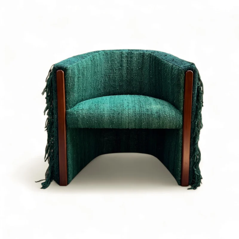 The Hilana Wool Chair by Diego Olivero, based in Brooklyn, is a testament to functionality, shape, and craft. Artisans in Momostenango, Guatemala, meticulously weave each piece on a pedal loom using hand-spun wool, infusing the chair with rustic elements and rich texture, evoking a sense of maximalist character. Upholstered in Guatemala City using pinewood, this chair supports sustainable income opportunities for Guatemalan artisans through your purchase, while emanating a unique and textured aesthetic.