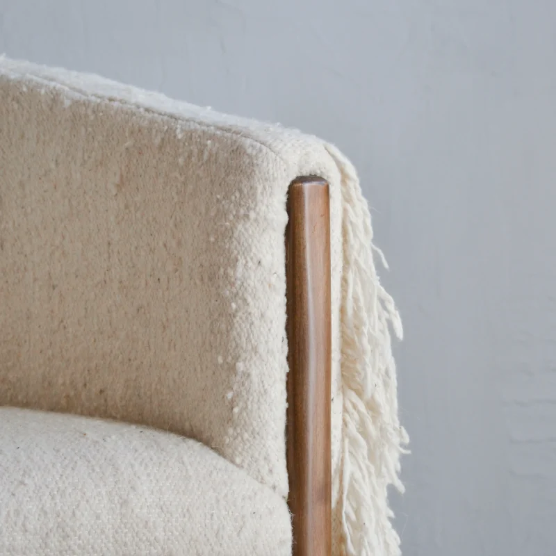 The Hilana Wool Chair by Diego Olivero, based in Brooklyn, is a testament to functionality, shape, and craft. Artisans in Momostenango, Guatemala, meticulously weave each piece on a pedal loom using hand-spun wool, infusing the chair with rustic elements and rich texture, evoking a sense of maximalist character. Upholstered in Guatemala City using pinewood, this chair supports sustainable income opportunities for Guatemalan artisans through your purchase, while emanating a unique and textured aesthetic.