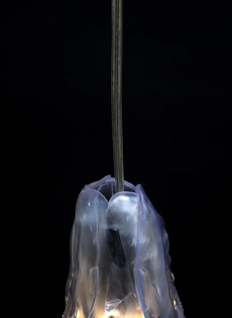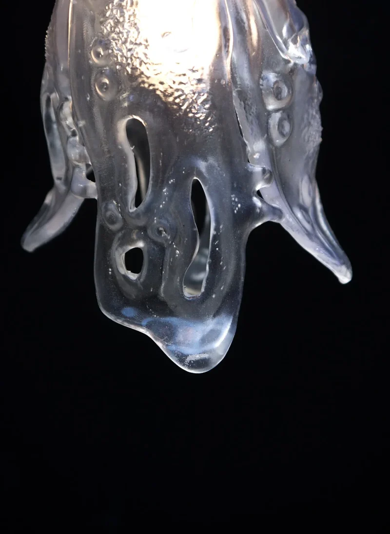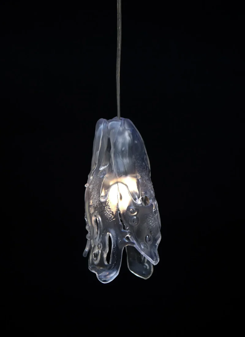 “HL_01” is a series by Leo Maher, made of resin lights produced using resin 3D printing techniques. These lights explore the unique capabilities and limitations of modern resin printing, a technology that is able to achieve intricate details that traditional methods cannot match.