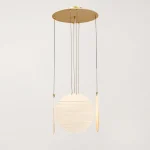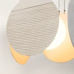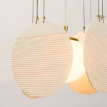 The Horizon Pendant by Rory Shamlian is part of the Antibes Collection, formed from a trip to the south of France. Inspired by the many vistas of the ever-changing horizon, this pendant captures the rhythm of the rising and setting sun, intertwined with the elegant forms of sails and ropes adorning boats in the port. The thin, striped porcelain pieces allow the light from the globe to shine through, an element of this fixture that becomes remarkable at night. Contact us to have the length adjusted to your exact needs.