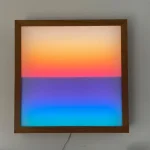 Horizons explores the threshold between day and night through shifting gradients of light and color. Golds and oranges dissolve into violets and deep cyan, evoking the layered depth of the horizon.
