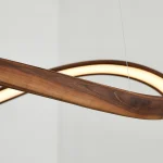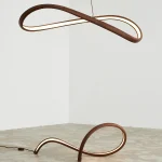 This ceiling lamp is made of walnut wood and treated with clear wood oil. It has integrated LEDs and acrylic details. Each piece is handcrafted using a stacked lamination process, before being hand-sculpted to achieve its final shape.
