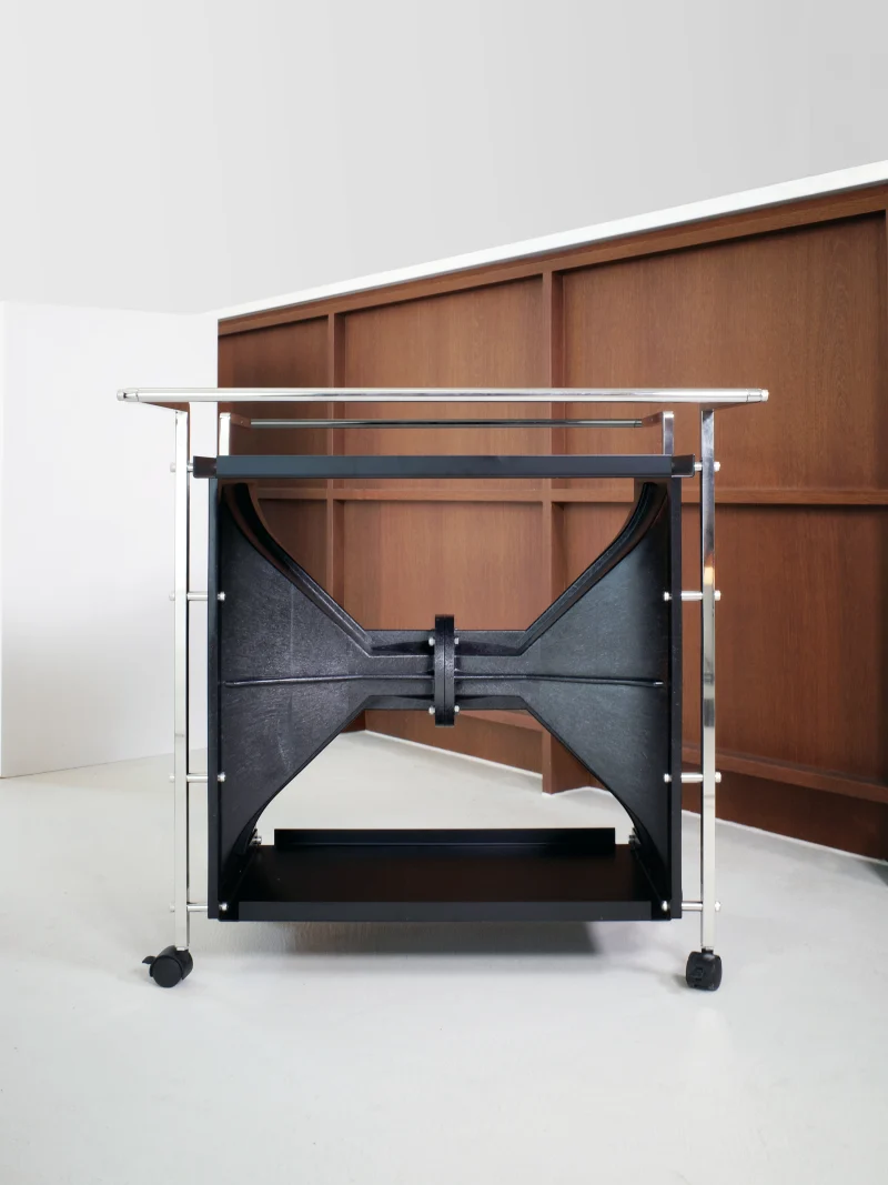 The product is used as a trolley and at the same time functions as an object placed in space.