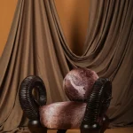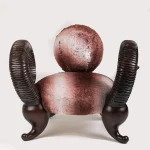 The design features striking armrests reminiscent of ram’s horns, a rounded faux fur backrest for unparalleled comfort, and gracefully sculpted kuiri-style legs. Crafted from sustainably sourced teakwood and premium faux fur, the Horned Majesty aligns with ethical and eco-conscious principles while offering lasting durability and ergonomic support.