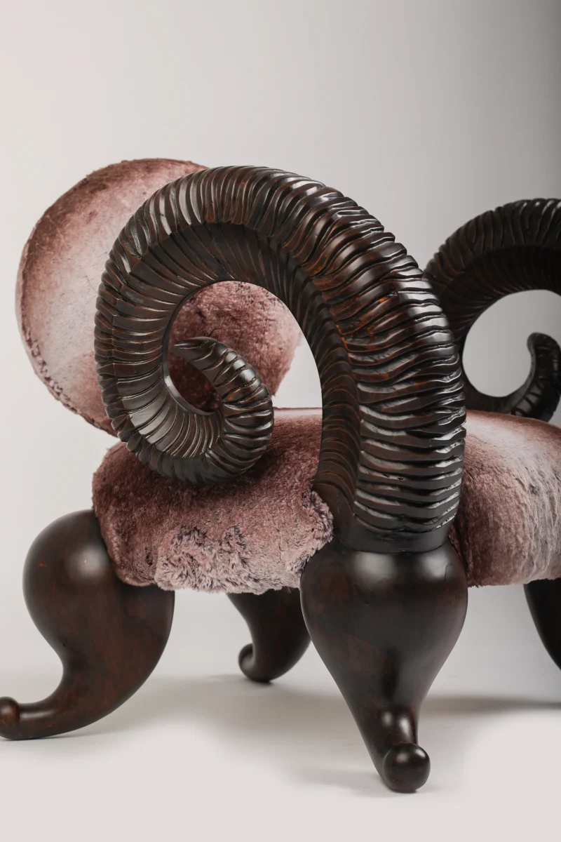 The Horned Majesty chair by sāar is a luxurious statement piece that merges art, nature, and functionality. Drawing inspiration from the grandeur of big-horned sheep, this chair embodies strength and elegance through its innovative design and impeccable craftsmanship.